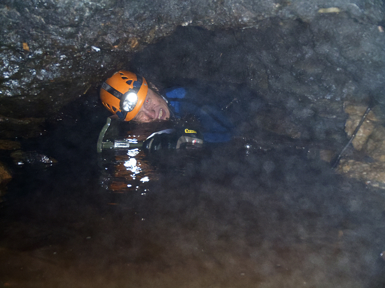 Darella on hauskaa Sipoon karstiluolan uuden kammion mittausretkellä.